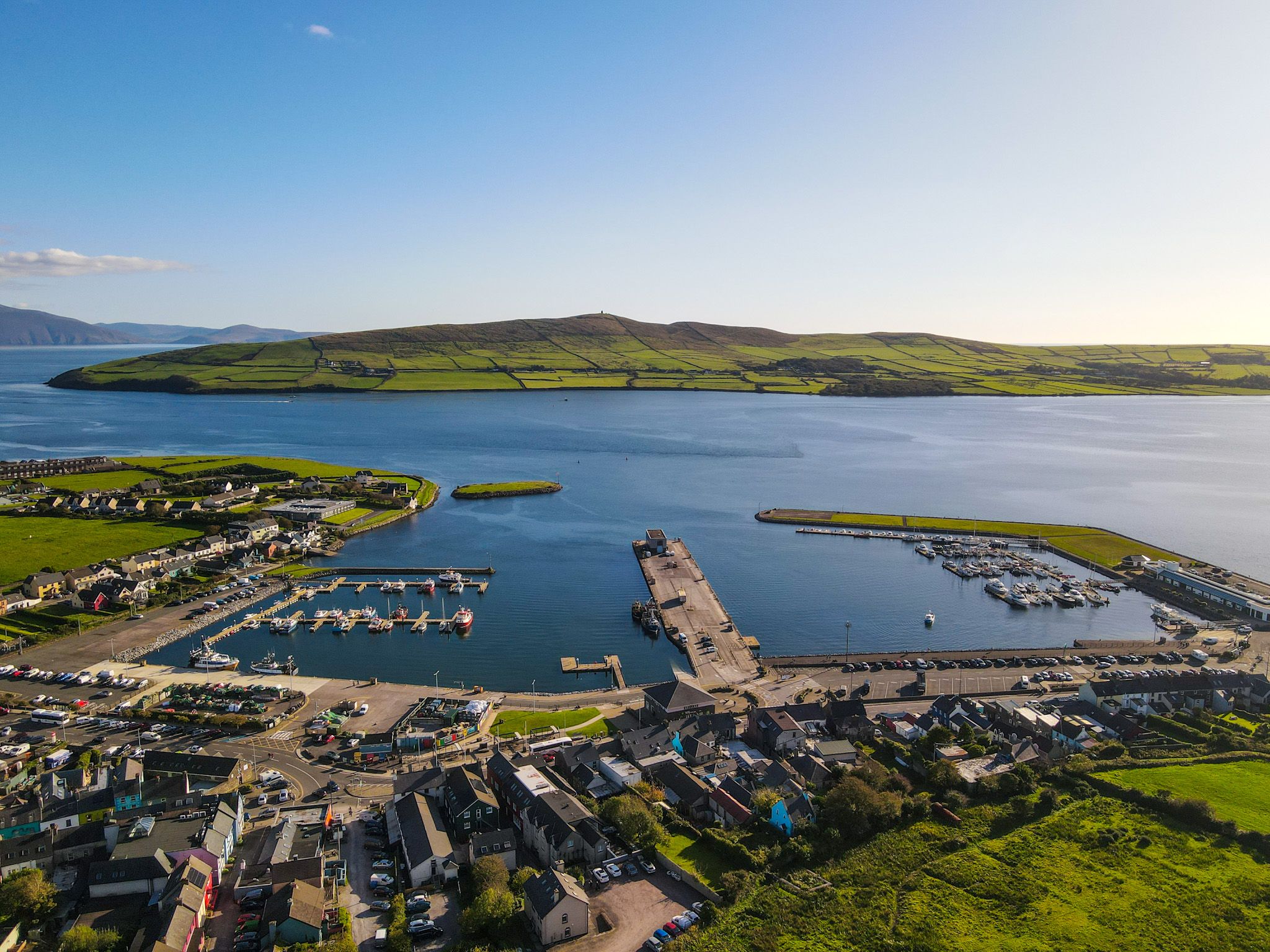 Travelling west along the harbour, the Dingle Way crosses the bridge over the Milltown River. On the right is Dingle Distillery, Ireland’s first purpose built distillery in over 100 years. Across the harbour you can see Esk Hill on which a tower was built in 1847 and among the trees, Burnham House, the former residence of Lord Ventry which now operates as a boarding school. A collection of Ogham Stones are on display on the roadway leading into the school.